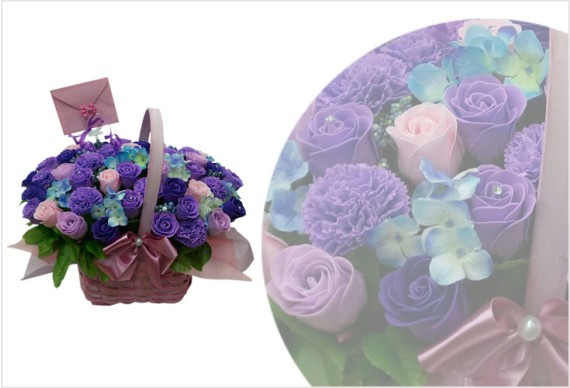 • 진보라비누꽃바구니